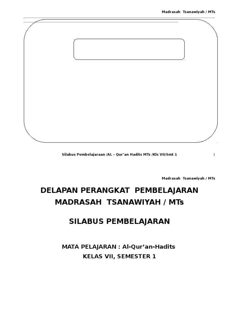 Setelah selesai mempelajarinya silahkan isi absen klik #quran_hadis_kelas_7_semester_genap #qurdis_semester_2 #alquran_hadist. File silabus disusun dalam format berekstensi.docx sehingga dapat diedit sesuai dengan smp/mts anda. 4 program semester qh vii 1 & 2. Silabus dikembangkan berdasarkan standar kompetensi lulusan dan standar isi untuk satuan pendidikan dasar dan menengah sesuai dengan pola pembelajaran pada setiap tahun ajaran tertentu. Berikut links download silabus dan rpp qur'an hadis mts pada kurikulum 2013